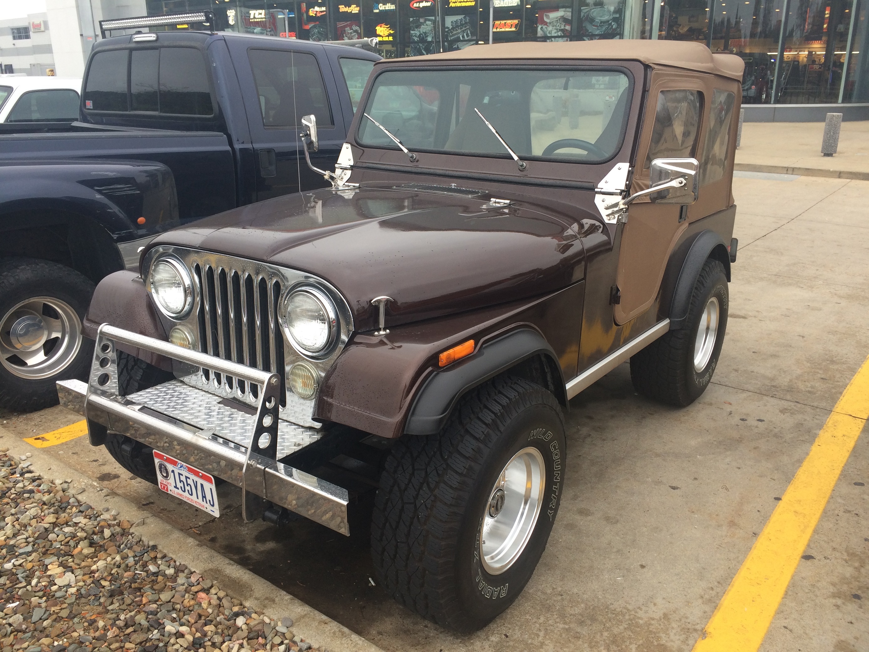 That’s why we were so pleased to see a brown-on-brown CJ-5 amble into the parking lot at Summit Racing’s retail store in Tallmadge, OH on a cold, rainy day. Though it’s now wearing a fiberglass tub, the rest of the Jeep is original, right down to its AMC 304 V8. A set of large tires and slight lift give the Jeep a tough-looking stance.