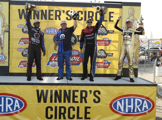 Funny Car – Bob Tasca III, Ford Mustang, 4.826, 197.59 def. Matt Hagan, Dodge Charger, 5.025, 188.15.