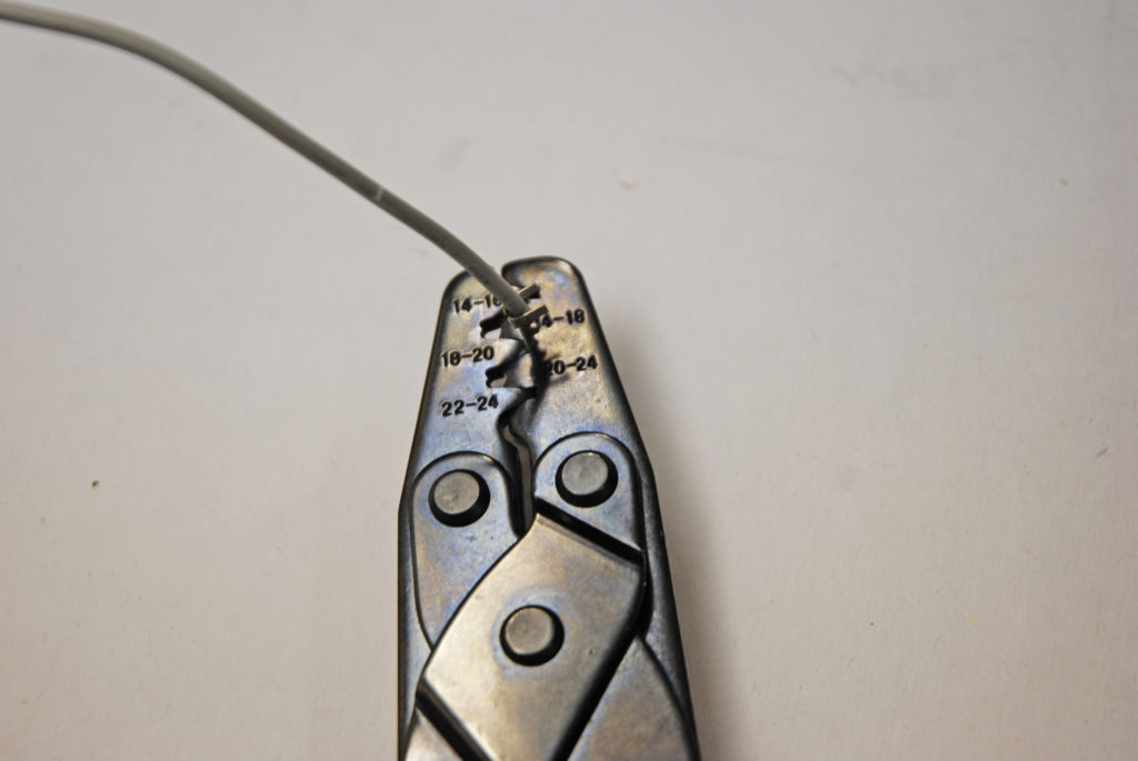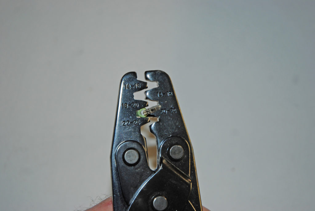 Crimp the wire into the pin by slowly squeezing the handles. Squeeze until the jaws of the pliers are fully closed. You can test the crimp by pulling back on the wire. If it doesn’t move, you’ve made a proper crimp, but if it moves, it’s better to open everything up and start again. You can either use a new terminal pin or attempt to straighten the original one. (Image/Wayne Scraba)