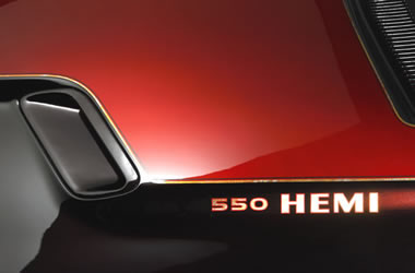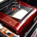 The custom blend PPG Candy Apple Red bottom and Black Cherry top highlight the bodylines that Bob’s so fond of and he had the paint scheme on the hood flip-flopped (black on the sides and body color up the middle) from the usual look to help show off the hood’s attitude. Before Rocky’s got to the clear coat, Bob had local artist Dave Knepper add a custom touch that makes this show car “done right.” A stripe of variegated gold leaf separates the two colors around the body and highlights the detail on the hood and air cleaner. In the sun, that 550 Hemi graphic on the hood lights up like a neon sign in Vegas.