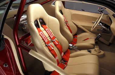 Interior Components: Summit Sport Seats with Simpson 5-point camlock harnesses, Jerry Bickell carbon fiber roll bar covers, Billet Specialties Dragster Half Wrap steering wheel, Ididit steering column, Auto Meter Cobalt Series Gauges, Alpine stereo, Billet Specialties rearview mirror, Pistol Grip shifter, Paul Atkins handles, cranks, foot pedals