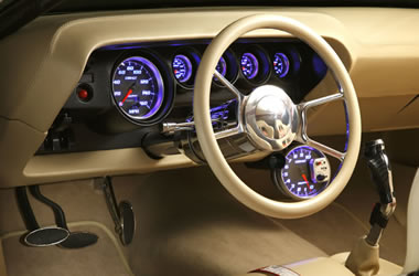 Bob got to work, going back and forth with the folks at Boyd Coddington Wheels to design the perfect 10-spoke, race-inspired wheel. The end result is a Pro Streeter-meets-show car design that sets the mood for the entire car.