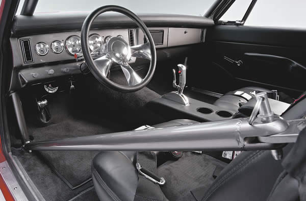 “Right from the start, John wanted the car to have a Hemi,” says Bud. Well, John got his wish. Sitting in the meticulously prepared engine bay is an Indy All Aluminum Street Legend Hemi that’s built for speed and is capable of creating a real ruckus. “I can’t hear my stereo when I’m driving down the highway,” chuckles John!