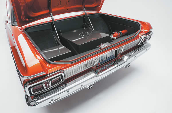 Although the Fury was in rock-solid shape, Bud’s plan of attack called for some major sheetmetal surgery. “We took a perfectly good car and cut it to pieces,” says John with a smile. The floor was cut out, the rear wheelwells were tubbed, and the wheelbase was stretched back 1 1/2 inches.