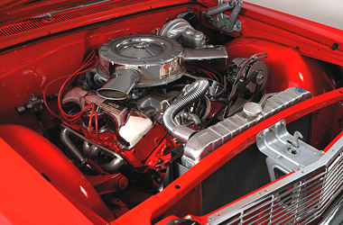 Other Items: Griffin Aluminum Musclecar radiator, Cool Flex polished upper and lower radiator hoses, Lokar stainless steel throttle cable and linkage, Holley Red electric inline fuel pump, Zoops Forgelite pulleys, Summit Racing 100-amp chrome-plated alternator, Summit Racing high-volume water pump, Summit Racing Mini High-Torque starter, ARP stainless steel engine and accessory bolts