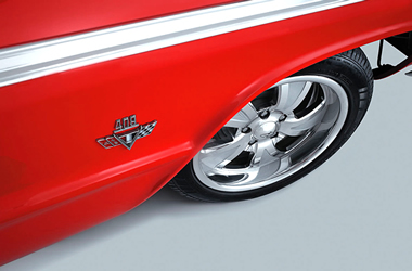He found them at the Barrett-Jackson auto auction in Scottsdale, AZ, when a rep from Intro Custom Wheels offered him a stunning set of custom-made 17-inch billet aluminum Twisted Vista takeoffs that had been used in a photo shoot starring—what else—another 1964 Impala SS. Tim left Scottsdale with one heck of a souvenir!