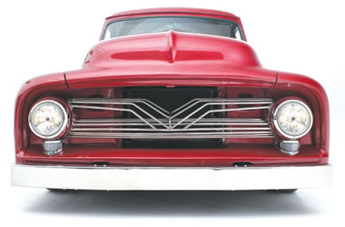 It took 10 years for Bob to get the Ford to where it is today; he figures he did 90 percent of the work himself with just a little help from his friends. Bob admits he had no solid plan—he just made it up as he went. Fortunately, his fine-tuned rodding skills came up with some unique elements including the tube grille, the hand-cut wood bed, and the custom-made taillights. The F-100’s paint was formulated to match a Honda Goldwing motorcycle owned by the Longs. “It’s a Chrysler color—Inferno Red Pearl Metallic, with a little extra pearl,” Bob said.