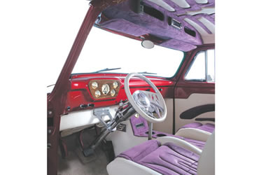 Modifications: 5 1/2-inch chopped top, tilt-forward hood, shaved door handles, molded-in taillights, hand-made tube grille, oak bed with stainless steel stringers
