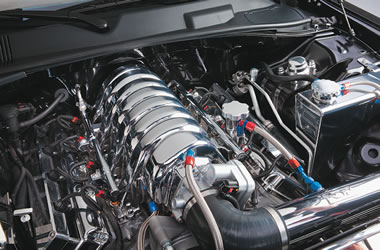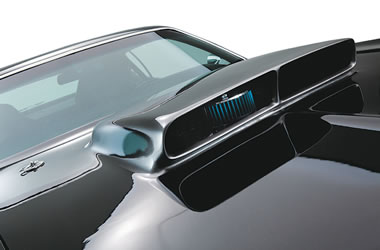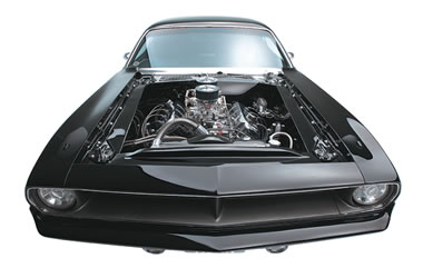 But the mods for this modern Mopar don’t stop there. “I really wanted people to say ‘wow’ when I opened up the hood,” Pam said. To complement her Challenger’s dash, Pam added a heavy dose of flash with a show stopping combination of chrome powdercoat and polished stainless steel accents, plus a specially designed fiberglass firewall fascia to clean up the engine compartment. A silver side stripe is the last bit of DNA that unites Joe and Pam’s twin Mopars.