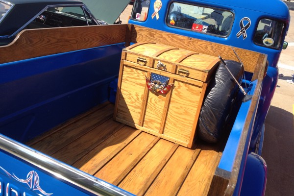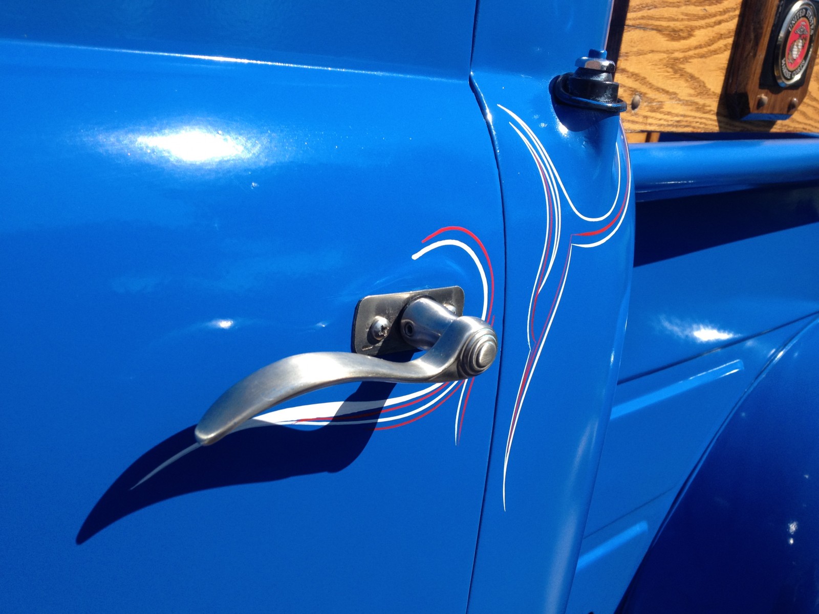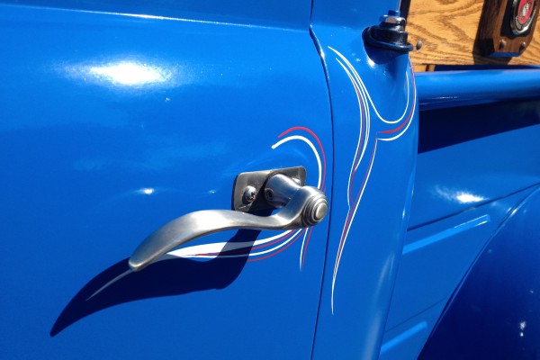Giglio’s upgrades are almost too many to list here, though the truck features a number of custom modifications totally unique to this ’50 Dodge, including pewter screen door handles for the truck’s door and hood handles.