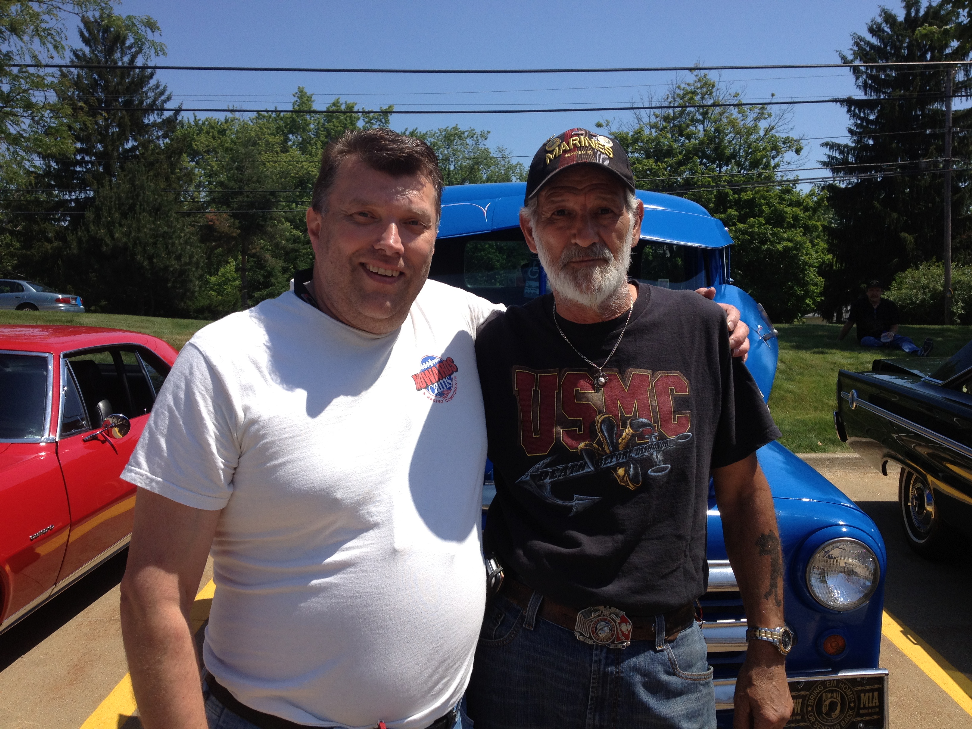 Summit Racing phone sales rep Vito, left, and long-time customer Don Giglio, right, just met in person for the first time a week earlier after years of talking on the phone