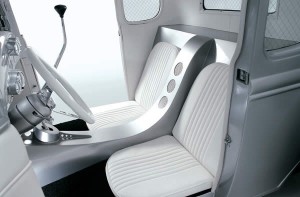 One of the most striking features of the Ford is one that you could just as easily look right through. There isn’t standard glass framed in the specially widened window channels, but rather institutional-grade stainless steel mesh safety glass. Why?