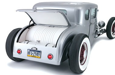 Other Items: Spun aluminum gas tank (relocated to trunk)