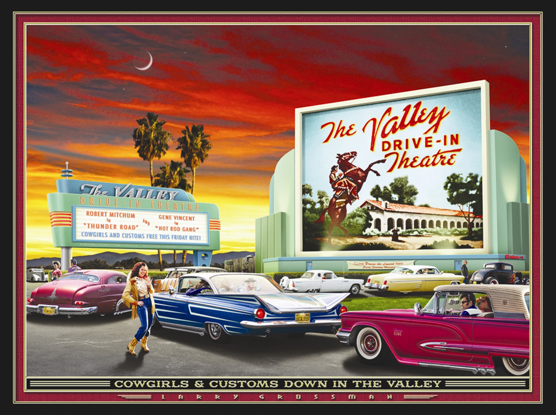 Drive-In Movies: Larry Grossman Lithograph, “Cowgirls and Customs Down in the Valley”