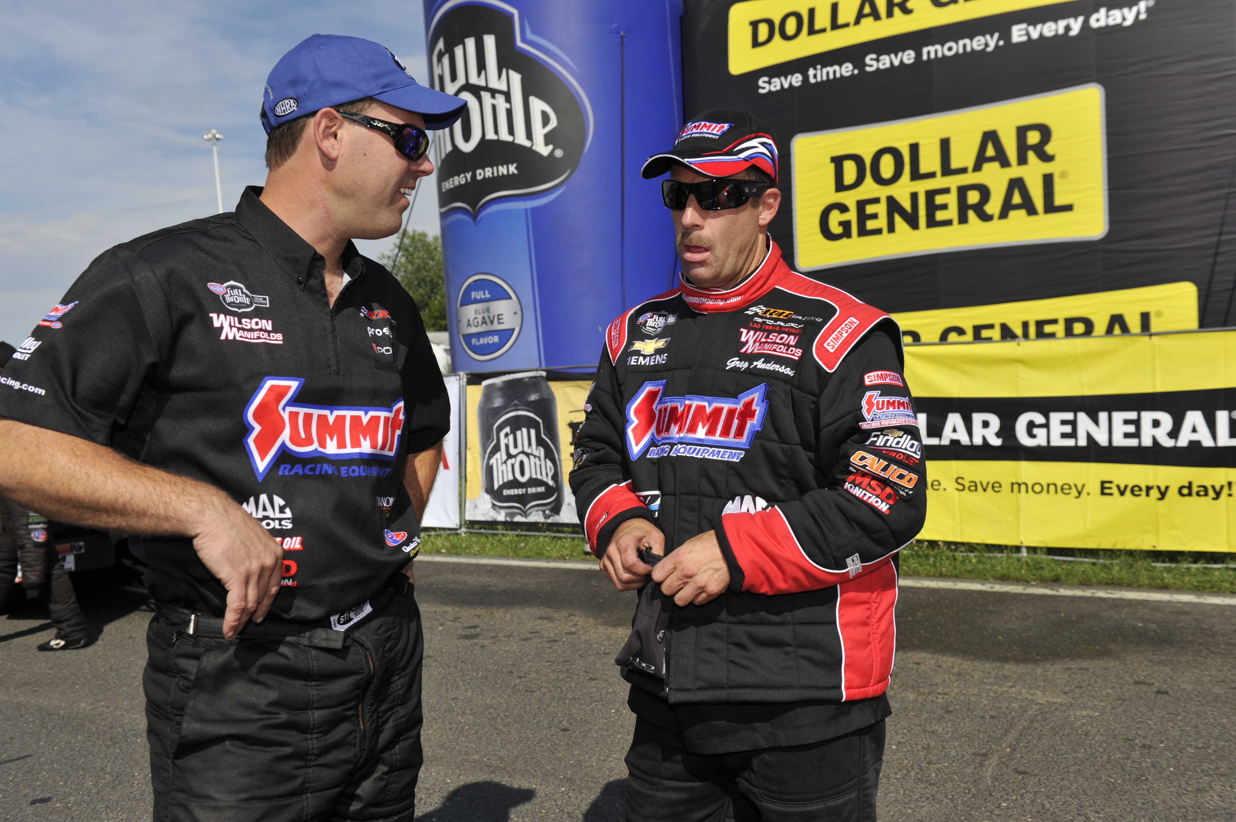 As the team prepared to continue their pursuit of the 2012 Full Throttle championship, the talented tandem took time to answer a few questions about their race team and the significance of the 100th win–and their quest for 101 at Summit Racing’s home track in Norwalk, OH.