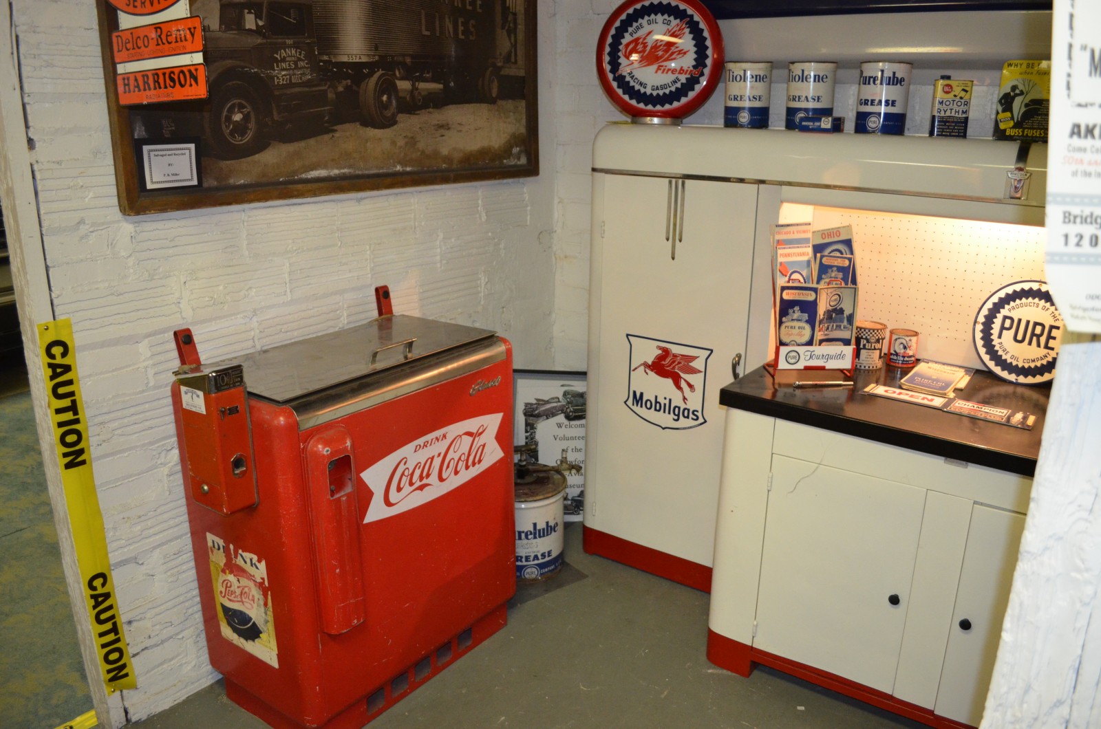 vintage tin signs and gas pump collection