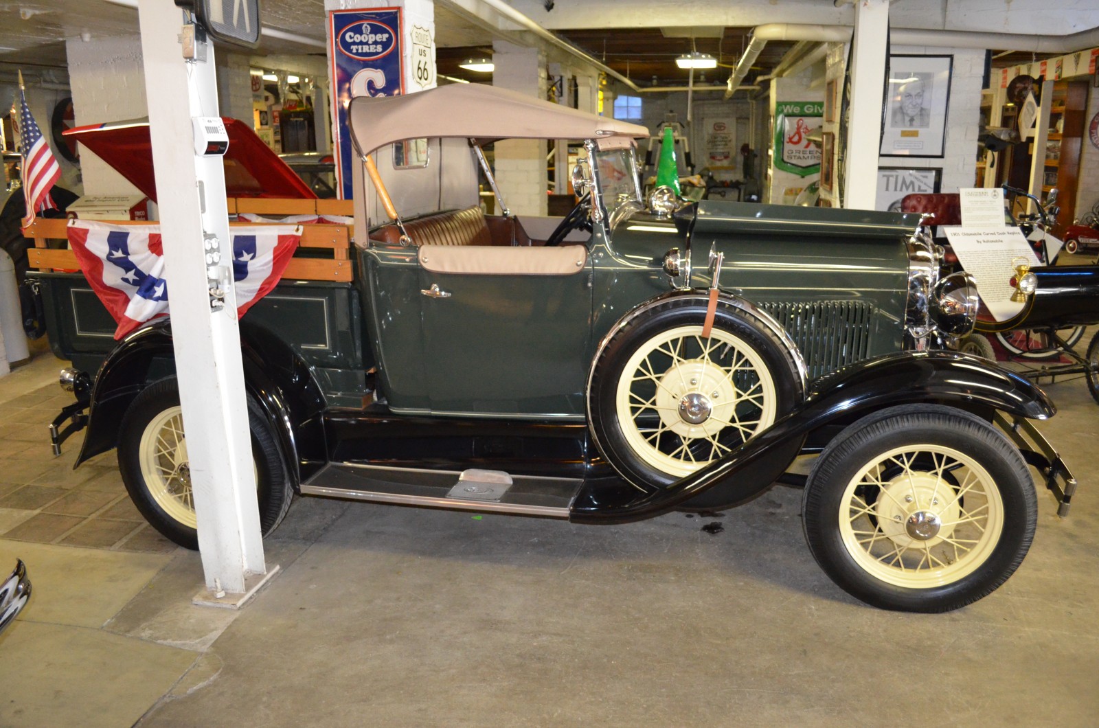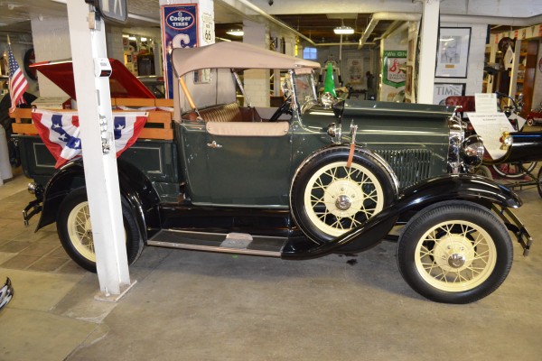 vintage ford roadster truck in museum