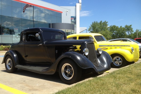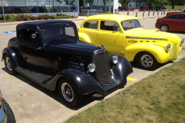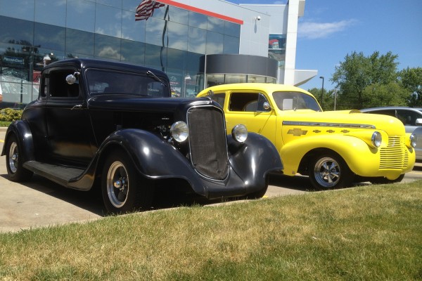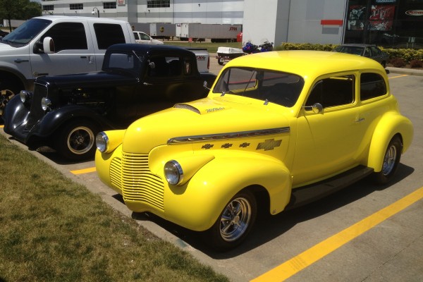 Of course, we could all take a lesson from the 1934 Ford and 1940 Chevy we found peacefully coexisting in the Summit Racing parking lot in Ohio. Sure, the Ford is black and the Chevy is yellow. And yes, one likes to wear a Bowtie and the other is tattooed with a Blue Oval. But these two distinctly different cars are both great examples of American engineering and style.