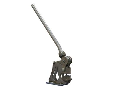 Punch ¼-inch holes into spring steel with very little effort. This compact, bench-mount punch has a removable two-foot handle and a replaceable punch and die.