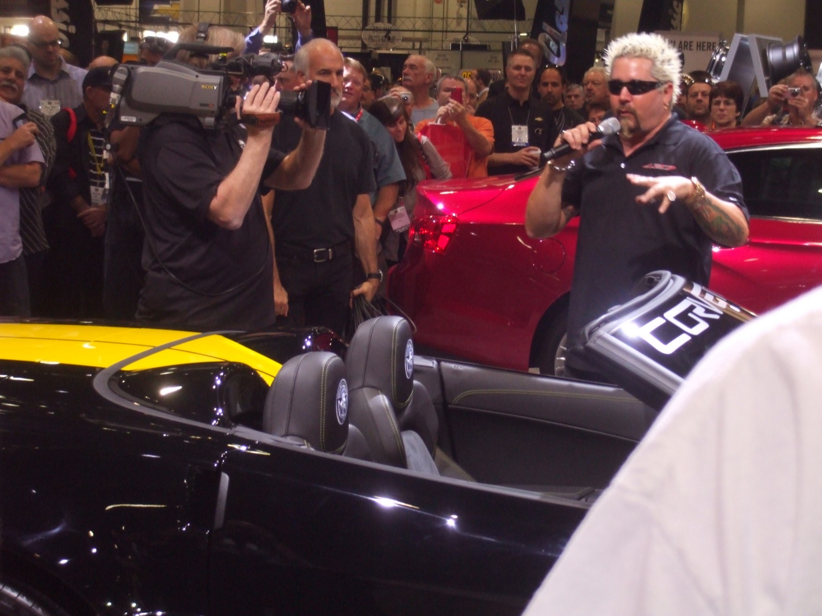 Guy Fieri talks the crowd at SEMA through his personalized 427 Corvette convertible.