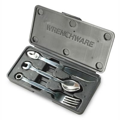 Cook up a great big helping of horsepower and wash it down with a giant dose of octane! The Wrenchware Tableware (right) set features a stainless steel fork with box wrench end, spoon with open end wrench, and knife with a plier end. You can serve up your next cup of coffee with an old school feel with a Mobilgas Diner Mug Set.