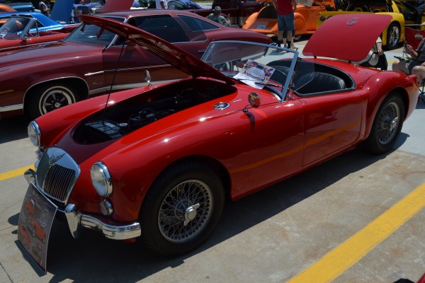 vintage MG British roadster coupe at classic car show