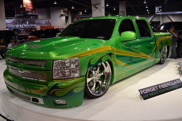 lowered green chevy silverado custom late model show truck