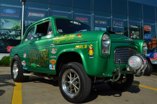 green anglia gasser nostalgia drag car
