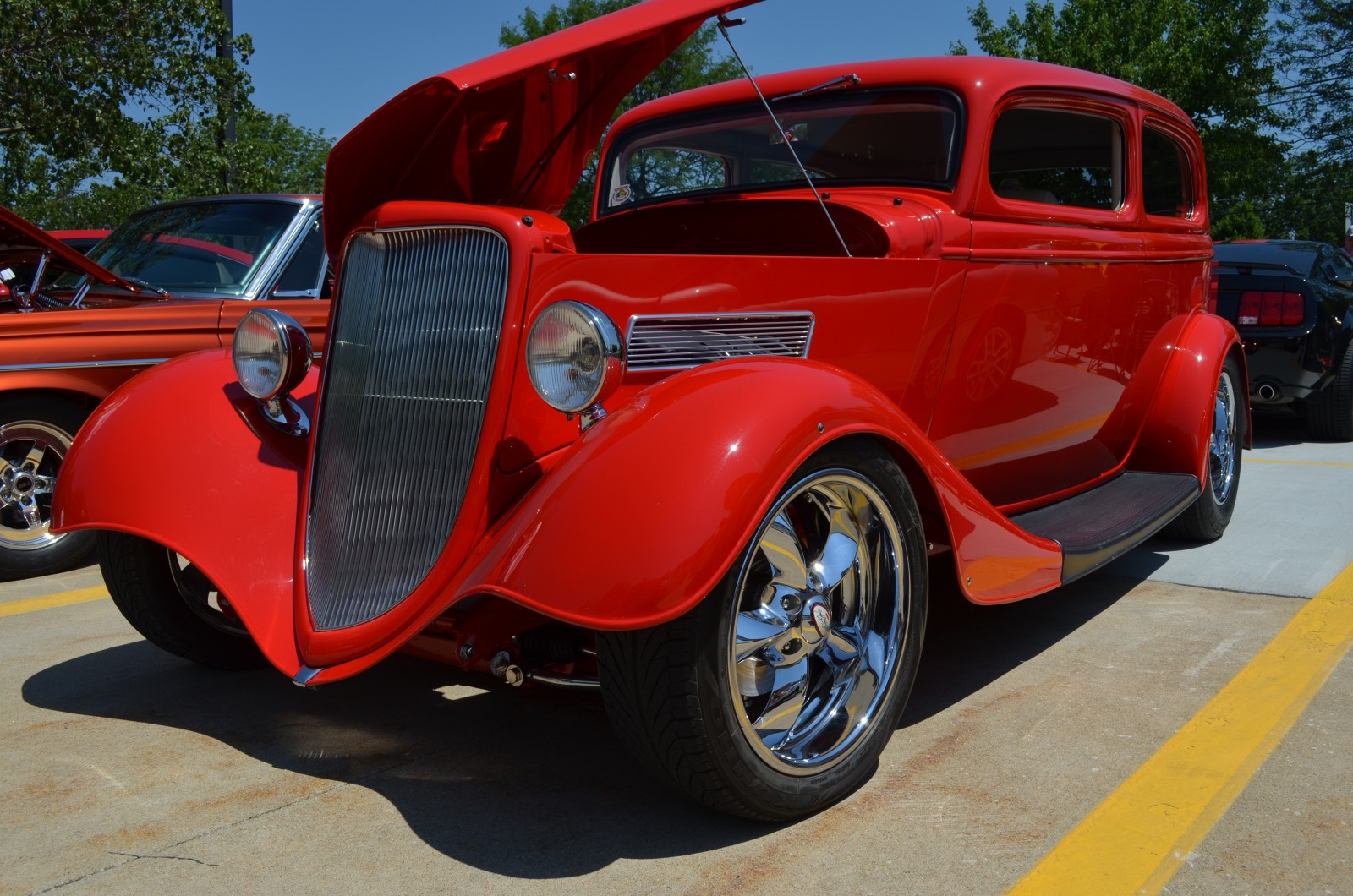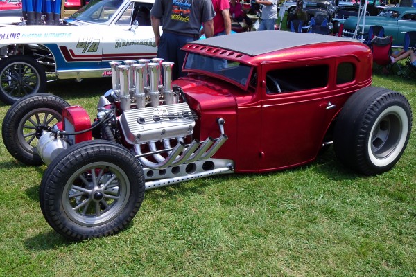 red custom hot rod prewar coupe