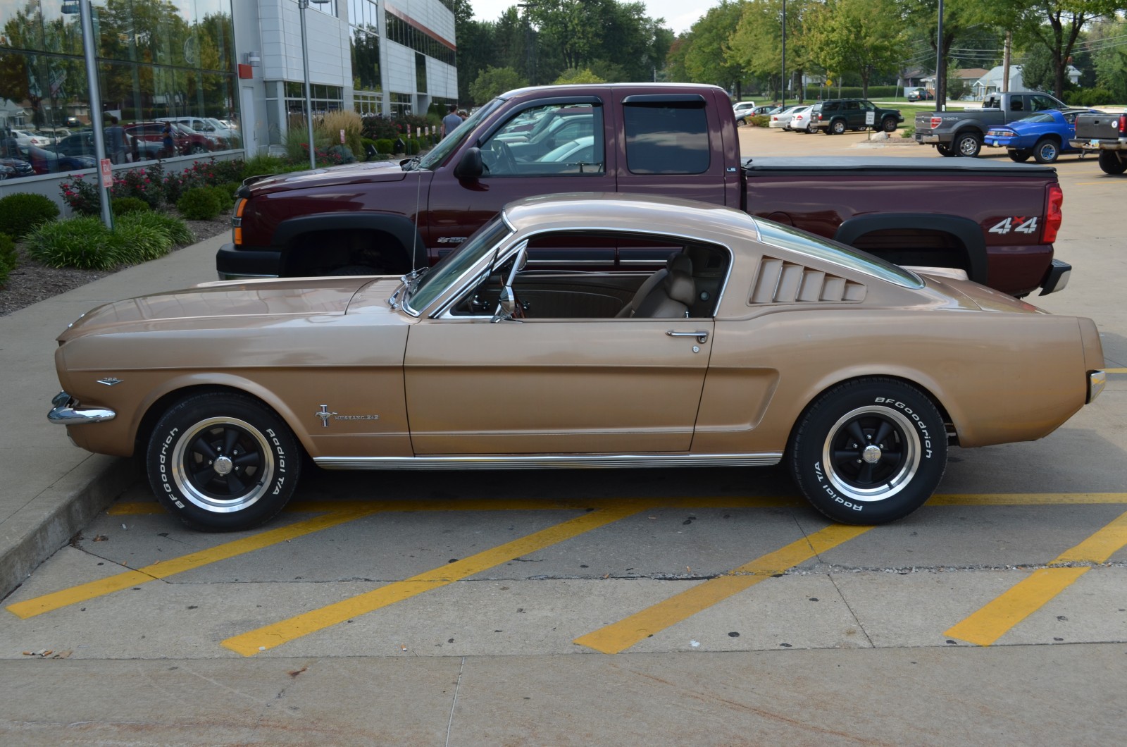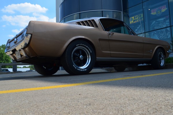 We recently found this 1965 Mustang Fastback 2+2 in front of the Summit Racing store near Akron, OH. The 1965 model year was the first full model year for the Mustang and the first year the fastback styling option was offered.