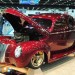 Built by Cal Automotive Creations in Omaha, NE, the coupe has a long list of modifications and other items of interest. It features a fuel injected Flathead V8 with GMC 4-71 blower, shortened and re-contoured hood, custom grille, hand-formed running boards, re-contoured fenders, custom paint by Charley Hutton Color Studio, and more.