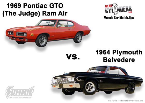 1969 Pontiac GTO (the Judge) vs. 1964 Plymouth Belvedere