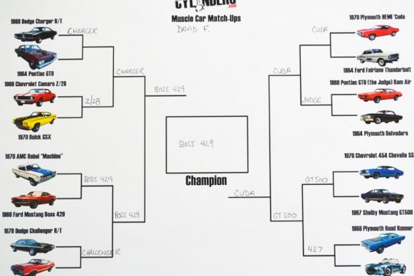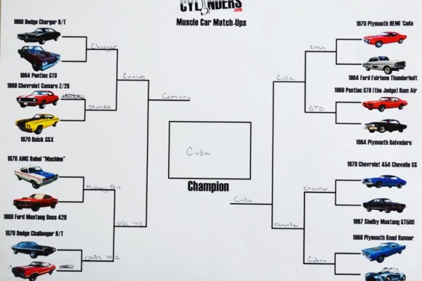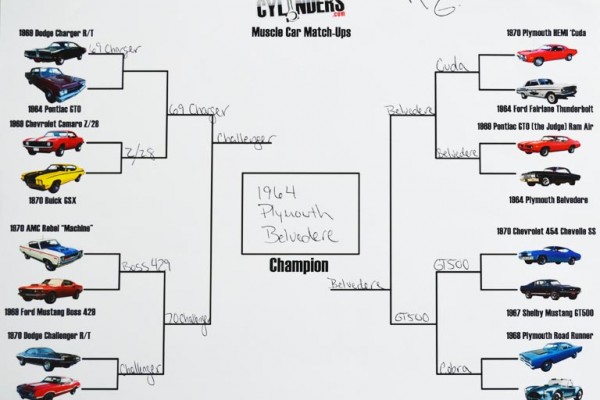 Our bracket consists of just 16 cars, and we tried to include vehicles from a broad spectrum of manufacturers to reflect the wide range of muscle cars that have been offered. With just 16 cars in the first round, some great cars missed our cut for this year–cars like the Pontiac Firebird, Mercury Cougar Eliminator, and others. See who did make the cut below.