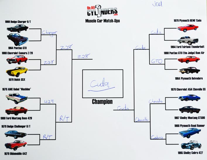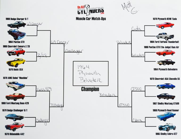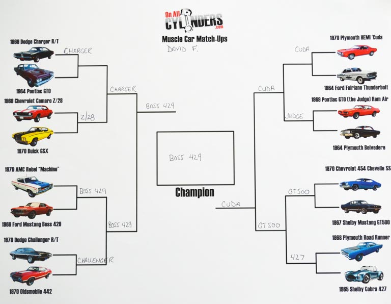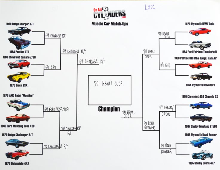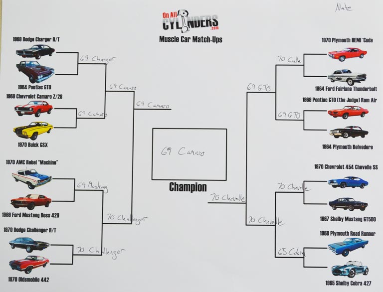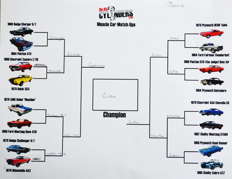 • Follow OnAllCylinders on Facebook and vote on each individual match-up when we post it. You make your pick by commenting on your favorite.