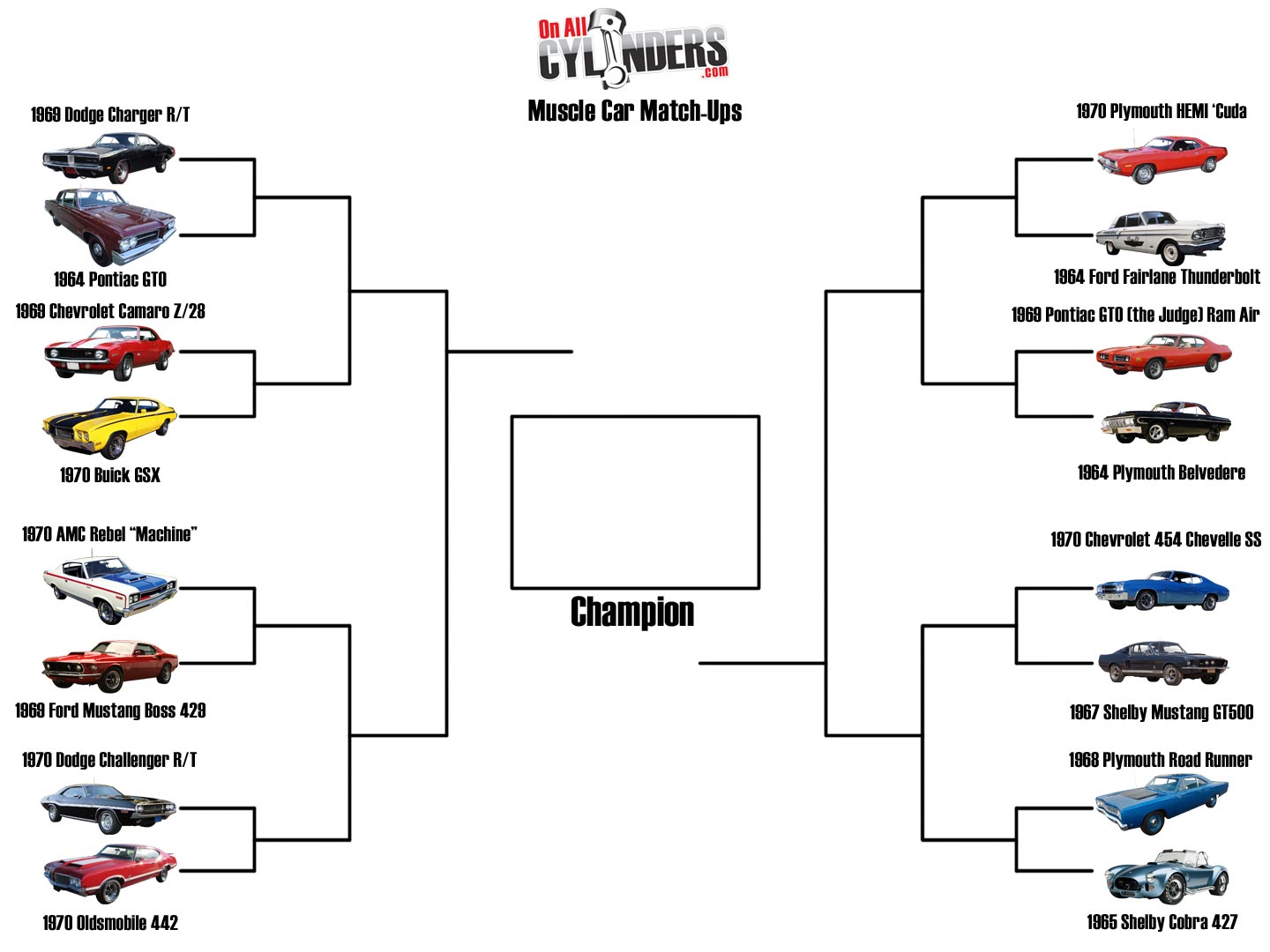 Love it, hate it, or indifferent, filling out tournament brackets has become somewhat of a rite of spring. Hot rodders want rites too, so we’ve created a special version of March Madness that all gearheads can get behind: Muscle Car Match-Ups. In this hot-rodded version of the Madness, we’ve placed 16 top muscle cars in a NCAA-style bracket to crown the best muscle car ever. And YOU determine the winner!