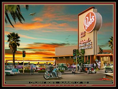 Everyone likes art. Especially moms. If you have a sentimental mother that longs for the good old days of sock hops, flavored soda, and other awesome things from the 50s and 60s, you might want to consider giving her some of this fantastically nostalgic hot rod-themed artwork. You’ll like it. She’ll like it.