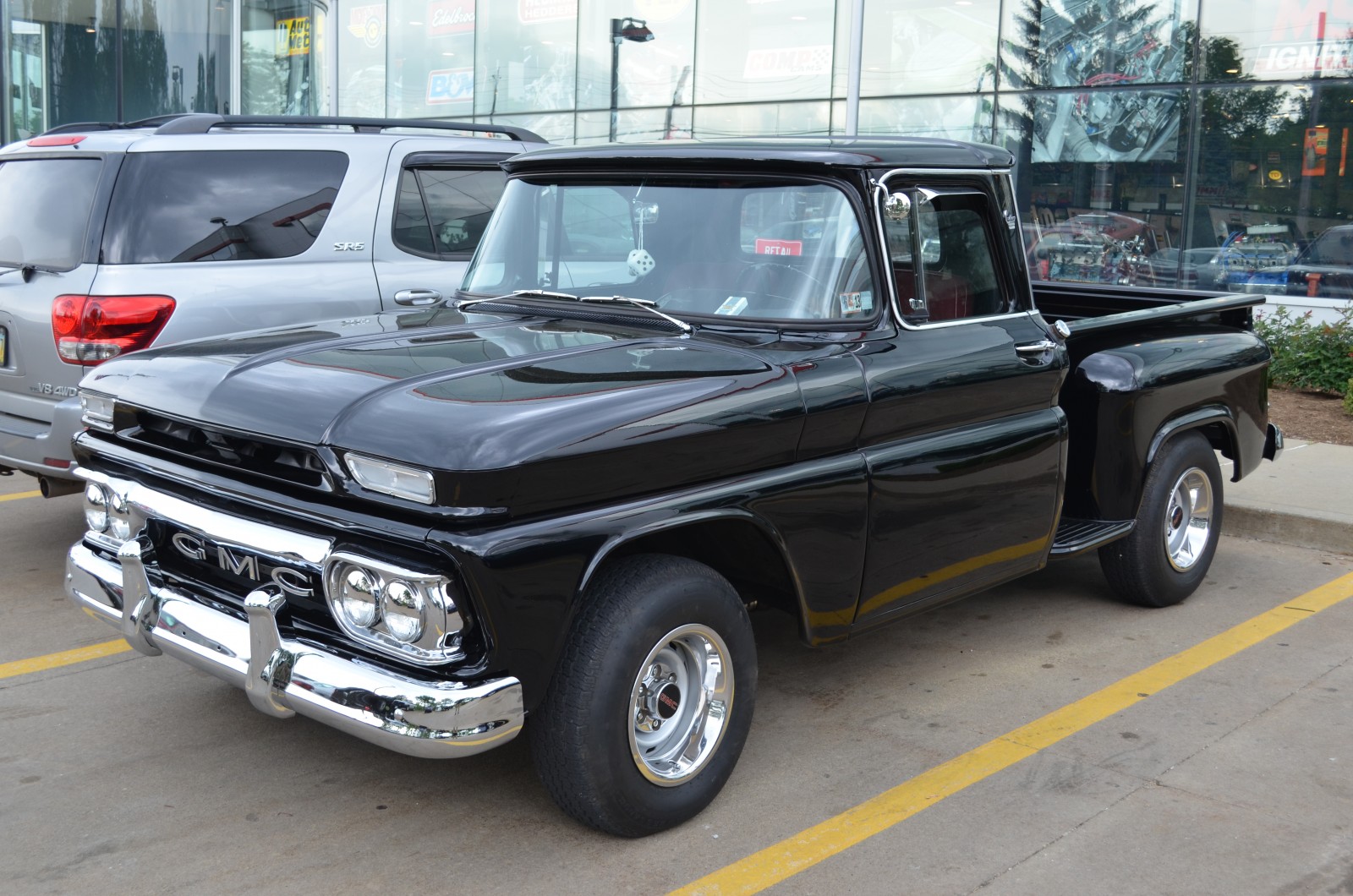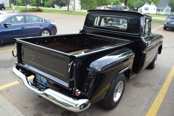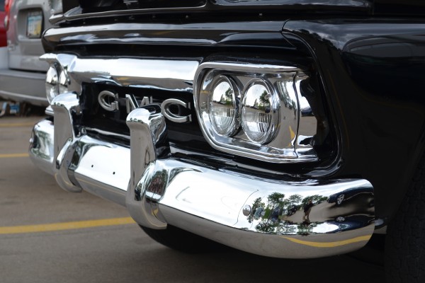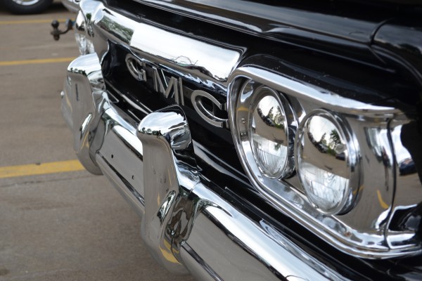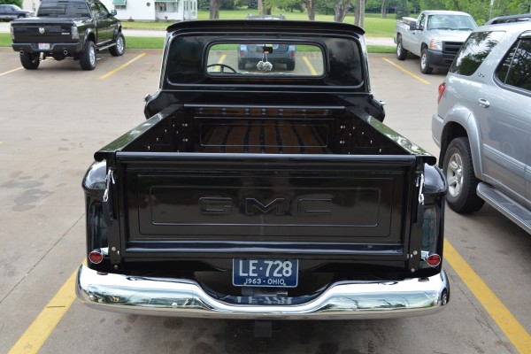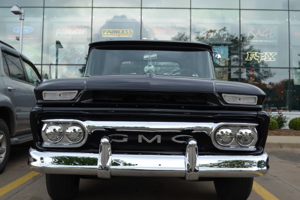 Like other Chevy/GMC light pickups of this era, this compact ’63 Custom towed the line between classic American hauler and road-hugging sport truck. The first gen C/Ks utilized a dropped center ladder frame setup to set the cab lower to the road and incorporated a coil spring front suspension, according to the original brochures. We love the way the simple, classic black paint works with the chrome accents on this particular truck. We also like the old-school GMC badging and quad headlights, which were a notable departure from the dual headlights found on Chevrolet models (and the answer to our question above).