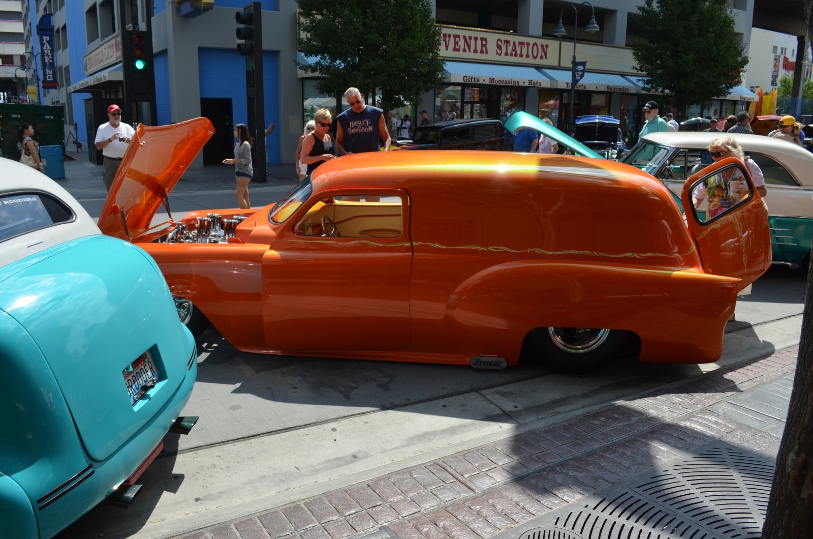 Each day of the downtown show-n-shines, which go on from today through Friday, 15 vehicles will receive daily best of show ribbons and an invitation to return Saturday for the finals and a shot at the grand prize. The judges will have their hands full as we found out today. We walked Virginia Street and the surrounding areas and shot a bunch of pics for this gallery. Block off some time because there are lot of photos here. And it’s just day one of three.