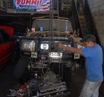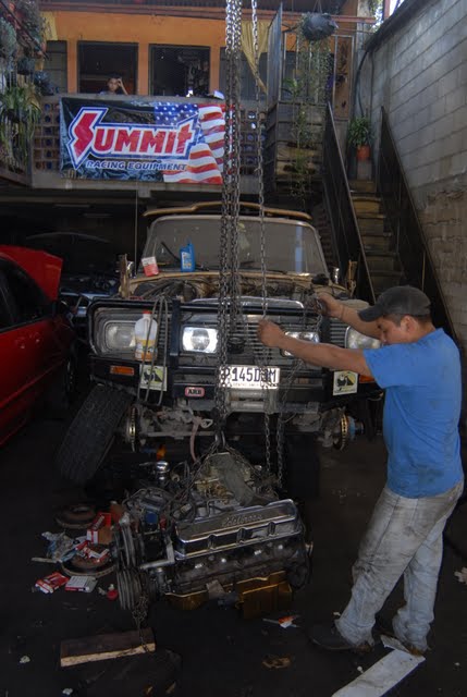 And if you think your garage is small and crowded, check out the photo of the shop in Guatemala where the Jeep was overhauled. Despite the less-than-ideal conditions, the local mechanics got the 360 humming and the Torqueflite shifting just fine.