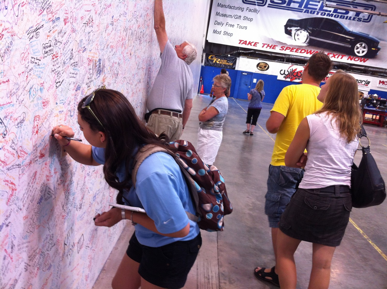 The story goes like this: The company moved into its current building in July 1998. People were asking for Carroll’s signature. So the Shelby team decided it would be cool if everyone who came to tour the factory left their autographs as well. So began the tradition of visitors signing their names and leaving messages for us to find years later.