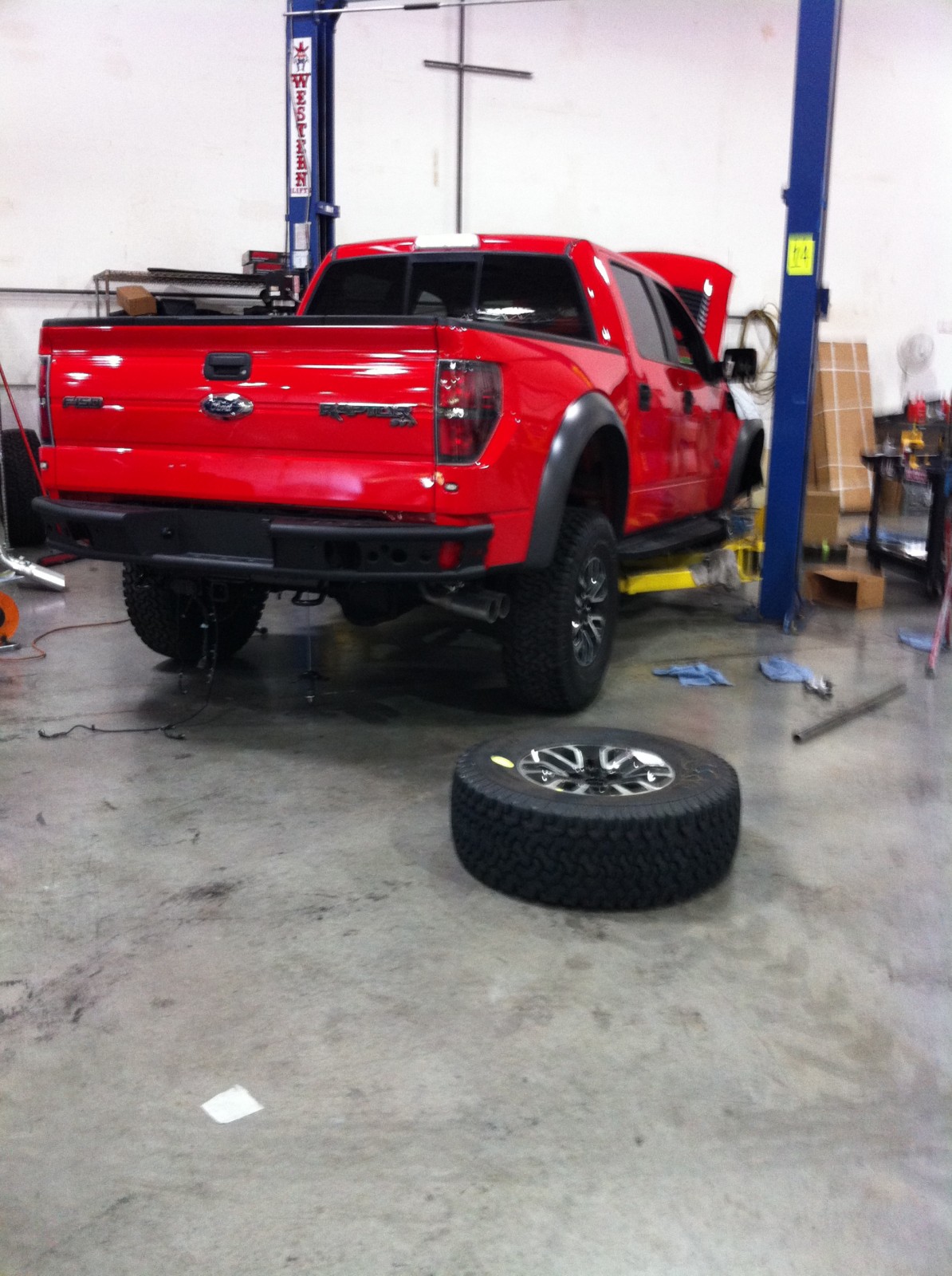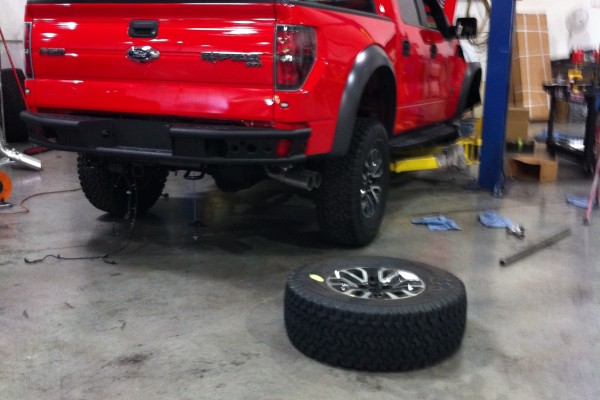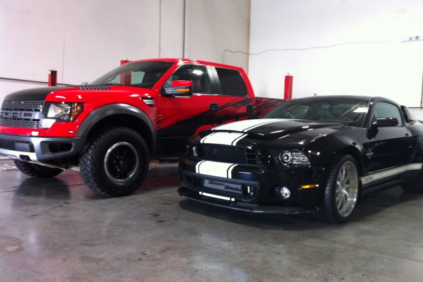 We saw Ford Raptors. The Shelby American crew was preparing to install emissions-legal 575-horsepower packages in them.