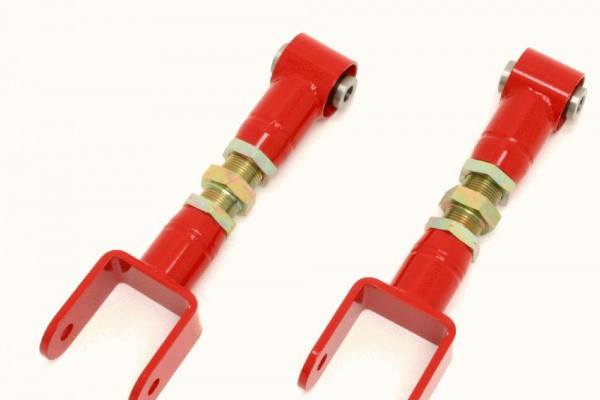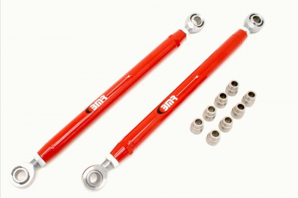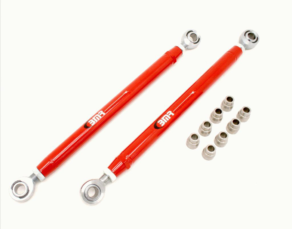 There are all sorts of different examples out there, but if you have already have a TRZ ARB, why not get a set of double adjustable TRZ uppers and lowers? From personal experience, they’re great quality. Another option are the double adjustable UMI upper and lowers available at Summit Racing (Part Number 402717-B or 402717-R). Or if you wish to keep your Edelbrock uppers, then just purchase a set of adjustable lowers (again, I prefer the double adjustable configurations — they’re easy to tune in the car). UMI part numbers are 4023CM-B or 4023CM-R.