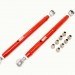 The upper arms can be used to set the pinion angle by adjusting both arms in the same direction and by the same amount. For cars with spherical bearings (rod ends) or solid rear suspension bushings, most racers use a pinion angle between minus one to minus two degrees (minus is negative angle, or pointing down). If the car has OEM style rubber suspension bushings, a pinion angle of minus three to minus four degrees is more appropriate.