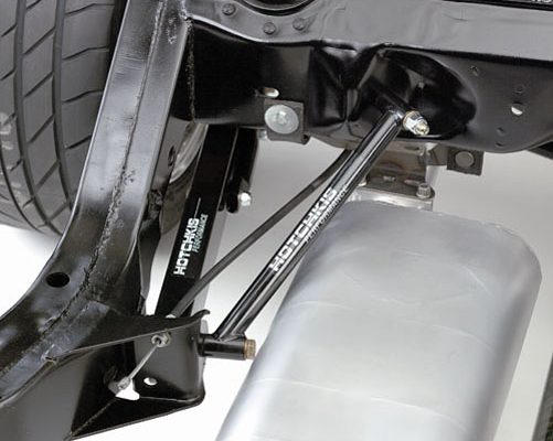 The system works well enough on the street, but not so well when it comes to hooking up at the drag strip, especially with big horsepower. So how do you make it work? There are three items to address: shocks, anti-roll bar, and adjustable trailing arms.