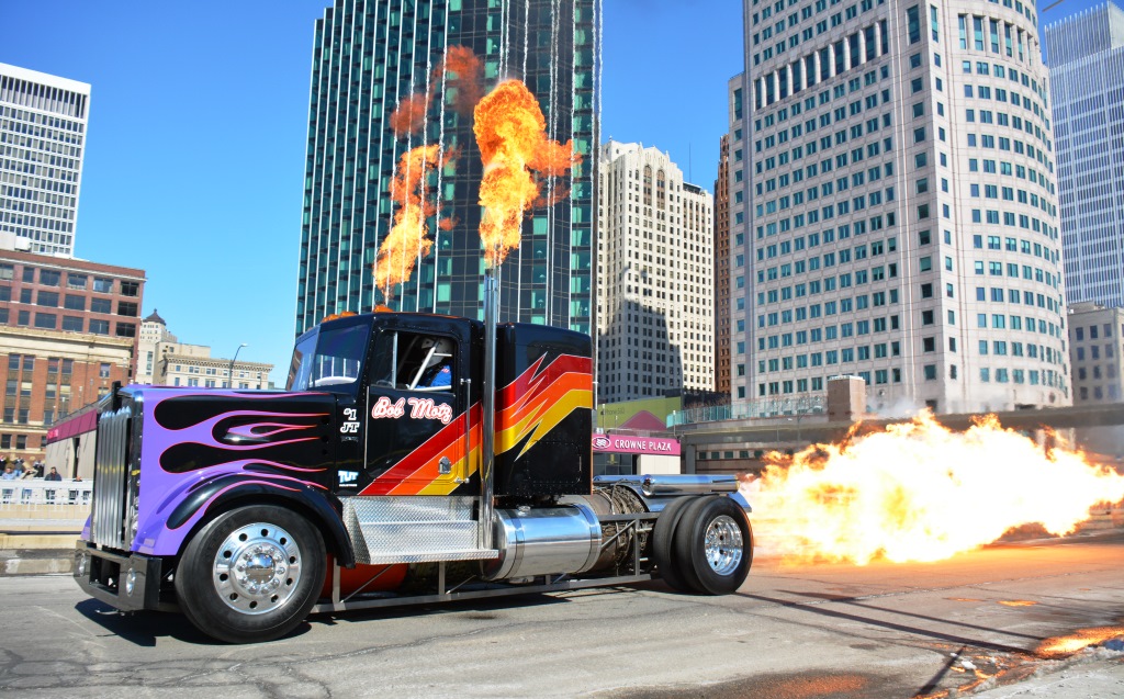 In the meantime, check out some images in our photo gallery from the show, including a couple killer shots of Bob Motz’s jet-powered truck wreaking havoc in downtown Detroit!