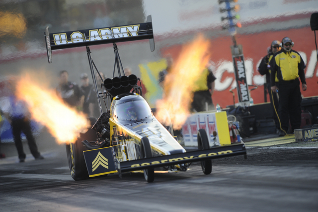 In Top Fuel, Schumacher snapped a 15-race winless drought by beating points leader Doug Kalitta with a performance of 3.797 at 326.16 in his U.S. Army dragster. It was Schumacher’s 73rd career victory and his eighth at Las Vegas.
