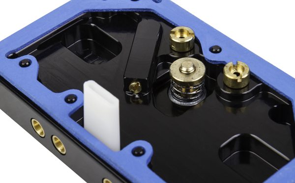 The carb’s throttle blades can also be adjusted with a set screw for wide-open throttle, and the PTFE-coated throttle shaft rides on a sintered bronze bushing that is oil impregnated for consistently smooth operation. The throttle shaft is also capped off to prevent dirt or debris from entering.