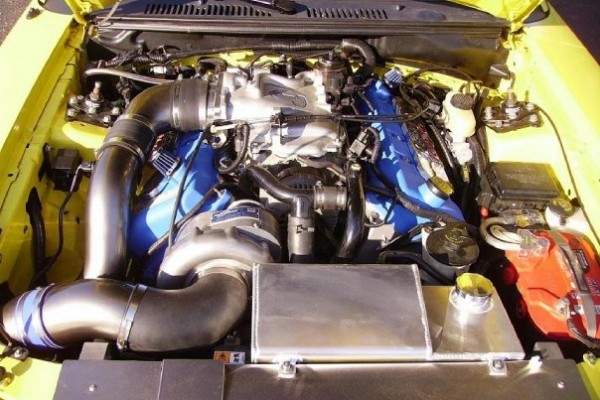 At the heart of this Cobra tribute car is an MMR modular 950 stroker 5.0L built on a balanced and blueprinted Cobra block. The engine features all forged internals, ported and polished Cobra cylinder heads with a five-angle valve job, and a Procharger supercharger with 60-pound injectors, three-core race intercooler, and twin Ford GT fuel pumps. A set of Kooks long-tube headers and MagnaFlow cat-back exhaust system help the stroker engine breathe freely.