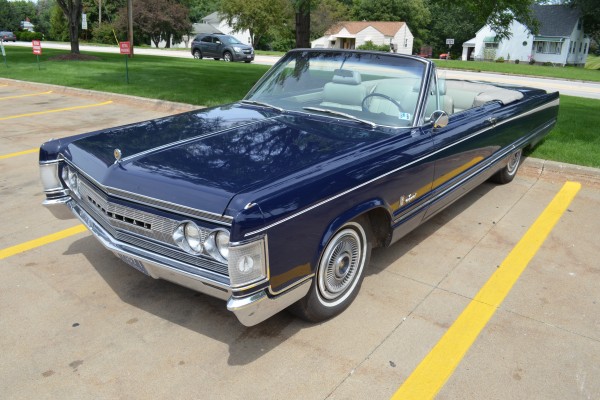 A 1967 Chrysler Imperial convertible powered by the “TNT” 440 under the hood. A boat of a street cruiser with a enough juice to make sure you don’t sleep on her.