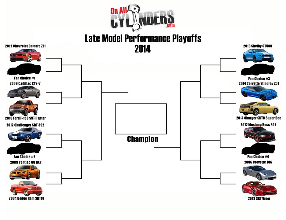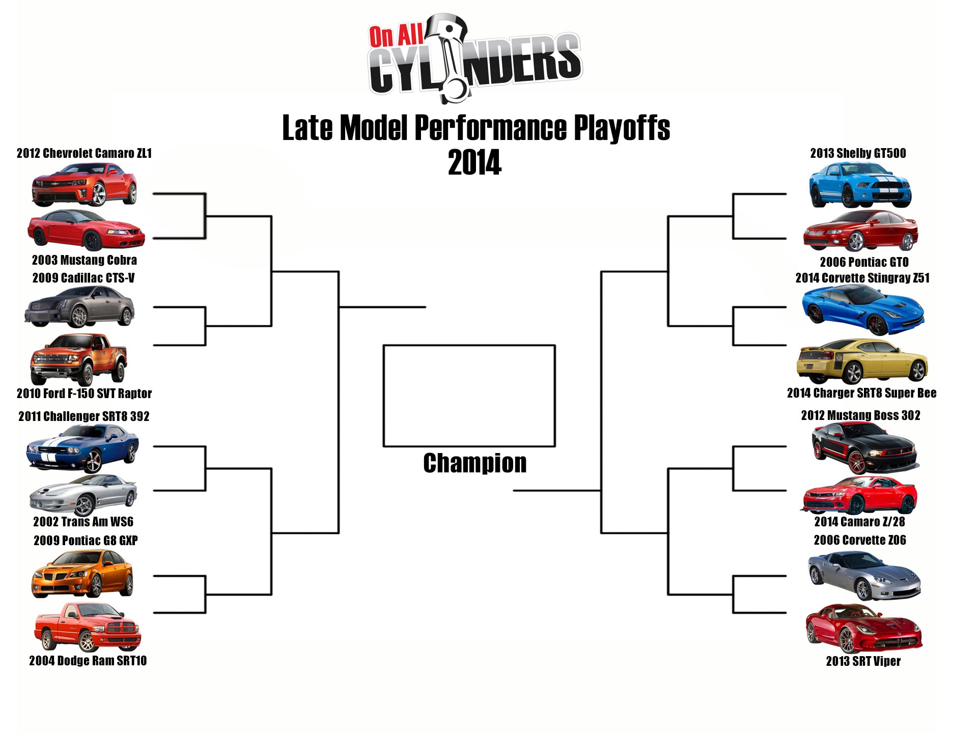 Why playoffs you ask? Because we still had the blank brackets left over from our Muscle Car Match-Ups campaign in March. However, these brackets playoff ladders will be filled with the best American performance cars since the turn of the millennium. And you’ll decide the winner.
